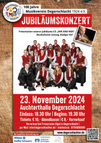 Zum Finale unseres 100-jährigen Vereinsjubiläums durften wir am 23. November gut 150 Besucherinnen in der Auchterthalle in Degerschlacht begrüßen. An diesem besonderen Konzertabend, mit Rüdiger Ruf am Dirigentenpult, haben wir nochmal Vollgas zum Abschluss des Jubiläumsjahrs gegeben. Rüdiger Ruf, der unter anderem als Flügelhornist bei den Egerländer Musikanten spielt, wurde eigens dafür engagiert um uns für die Aufnahme eines neuen Albums fit zu machen, das zum Jubiläum in den Bauer Studios in Ludwigsburg aufgenommen wurde. Der daraus entstandene Tonträger mit dem Titel WIR SIND WIR! konnte so an diesem Abend auch erstmals der Öffentlichkeit präsentiert werden. Die Art und Vielfältigkeit der auf diesem Album enthaltenen Musiktitel machte auch das Programm des Konzertes aus. So durfte sich das Publikum sowohl an klassischer Blasmusik als auch an groovigen und swingenden Bigband-Arrangements erfreuen. Mit einem großen Dankeschön an alle Beteiligten, die mit viel persönlichem Einsatz an den Feierlichkeiten und Aktivitäten zum Jubiläum beteiligt waren und nach zwei Zugaben ging für uns Aktive ein bewegendes und sehr ereignisreiches Jahr zu Ende.
